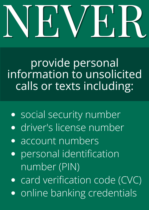 If anyone requests this information—whether by phone, text, email, or in person—do not provide it.